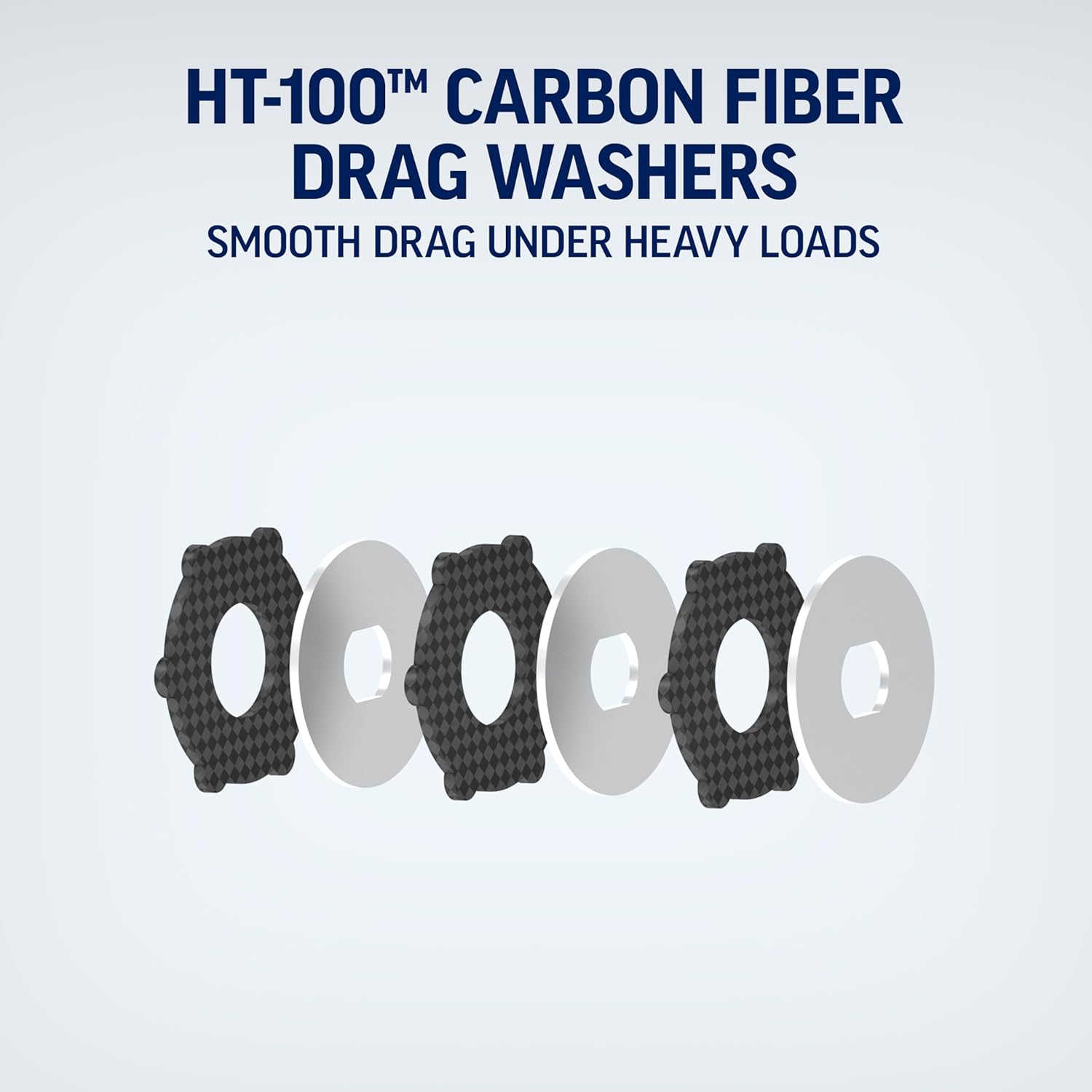 The PENN Pursuit III spinning reel features a durable graphite body and rotor, providing a lightweight yet sturdy construction that can withstand the rigors of saltwater fishing. Equipped with a smooth and powerful HT-100 carbon fiber drag system, this reel ensures consistent drag pressure to handle hard-fighting fish with ease. The 4+1 stainless steel bearing system delivers smooth and reliable operation, while the instant anti-reverse bearing ensures solid hook sets.